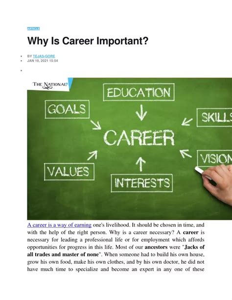 A career is essential for various reasons. Firstly, it provides financial stability, which allows you to meet your basic needs and enjoy a comfortable lifestyle. It also offers a sense of security for the future, as you can save for retirement and unexpected expenses.